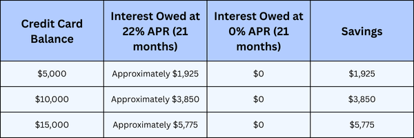 A close colleague recently pointed out this option, and the math is undeniable. Take a balance paying 22% APR, transfer it to a 0% card, and suddenly the same payment wipes out debt nearly twice as fast.