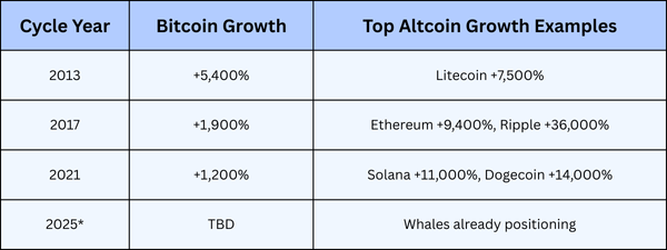 This cycle looks no different. Analysts are whispering about a potential $300,000 Bitcoin target, and history says altcoins could outperform even more dramatically once liquidity spills over.