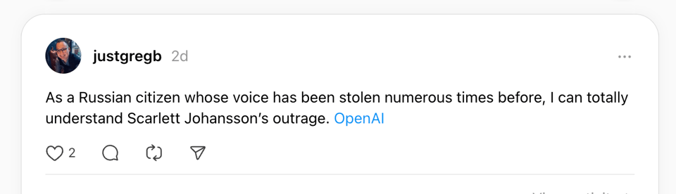 I'm not sure if I want to call anyone, let alone my browser. As for the OpenAI, I shared this post on Threads. I still think it's a banger even if it got only two likes: