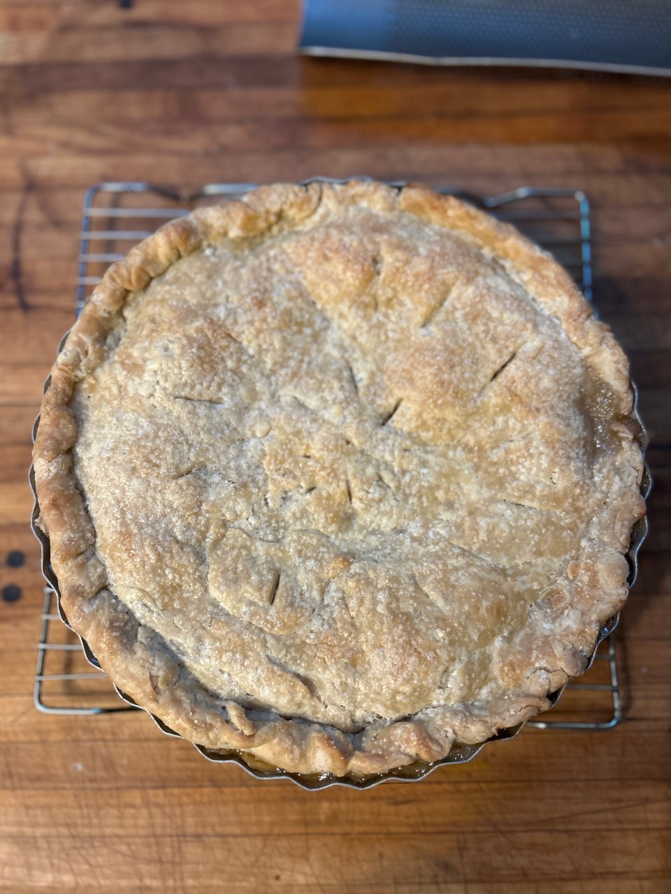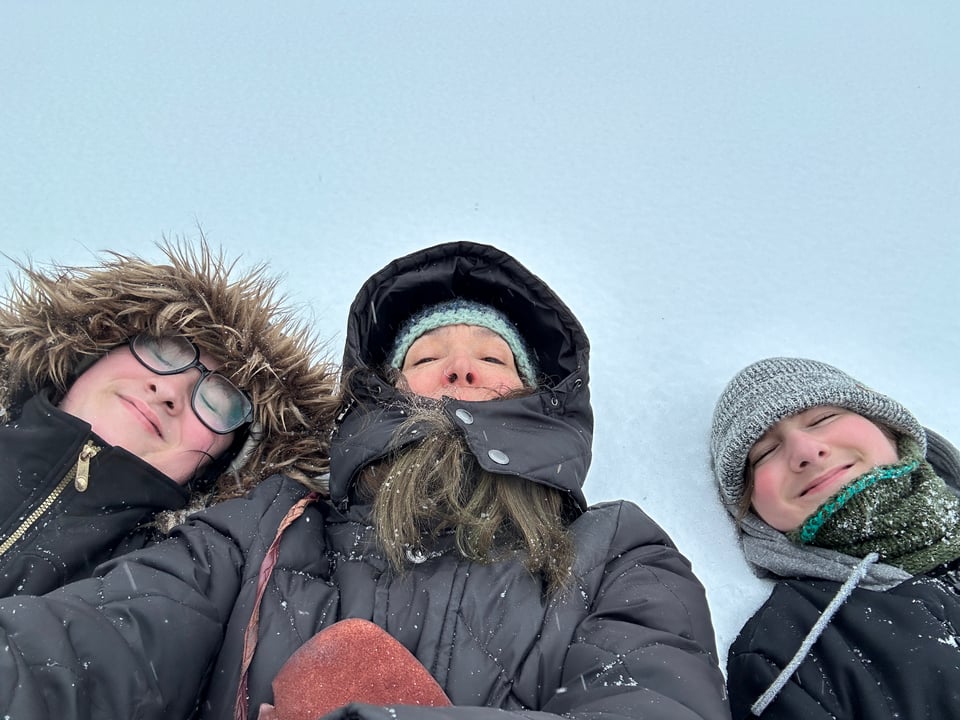 My kids and I went out in the snow on Sunday, while my husband stayed home and baked an apple pie.