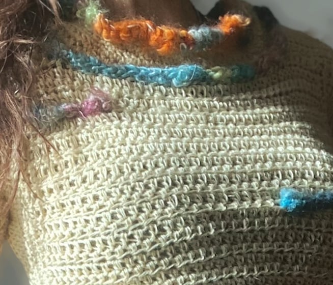 In this first intuitive crochet class, you will learn basic techniques so you can then build upon that information and create whatever you’d like. As you become more advanced and comfortable with your abilities, we will work on more complicated projects in subsequent classes. If you’re more inclined to follow patterns, and that’s how you would like to work, then take the information you learn from my classes and do that. This first class is a starting point. If there’s a lot of interest, I would like to teach many different classes all based on the intuitive approach to crocheting, which is exclusively how I create. Sometimes I have a plan for what I want to make and sometimes I don’t. I find it exciting to not always have expectation and allow a piece to unfold as you go, trusting your instincts. I’m really looking forward to teaching people how to crochet in such a new and different way. My hope is that folks who have hesitated to learn crochet because of rigid structure or patterns will feel that this method of crocheting is right for them. I plan on these classes being very inclusive, and open to everyone with the desire to learn. All ages and abilities are welcome in the classes. Children under the age of eighteen must be accompanied by a parent or guardian. All necessary supplies will be provided by me.