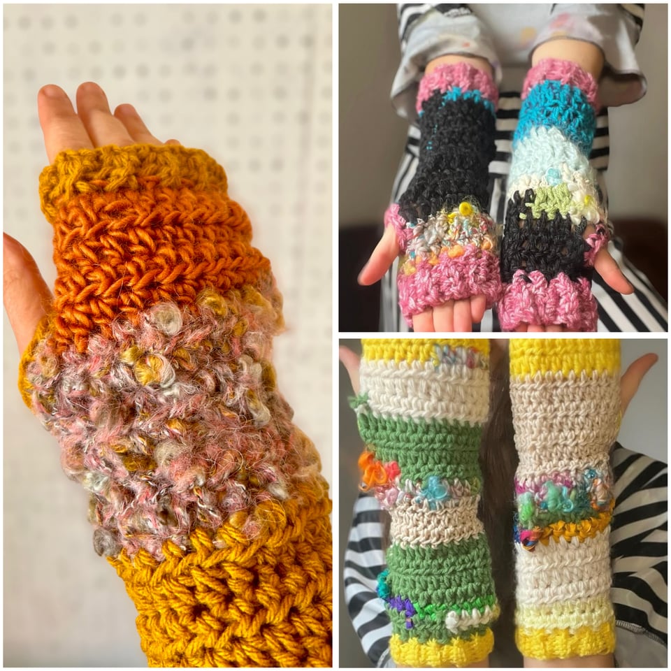 I made a bunch of wrist mitts, arm warmers, and scarves.