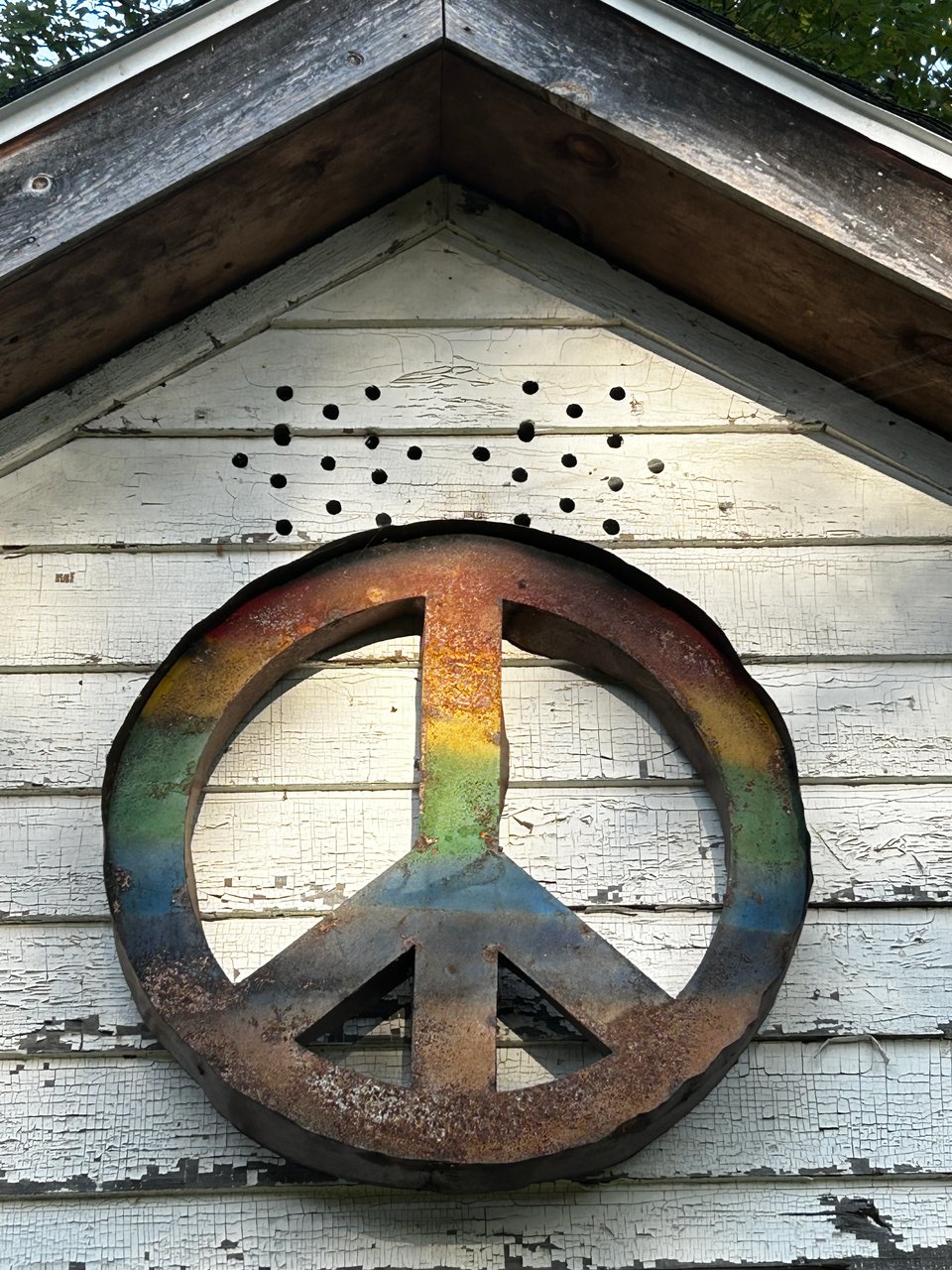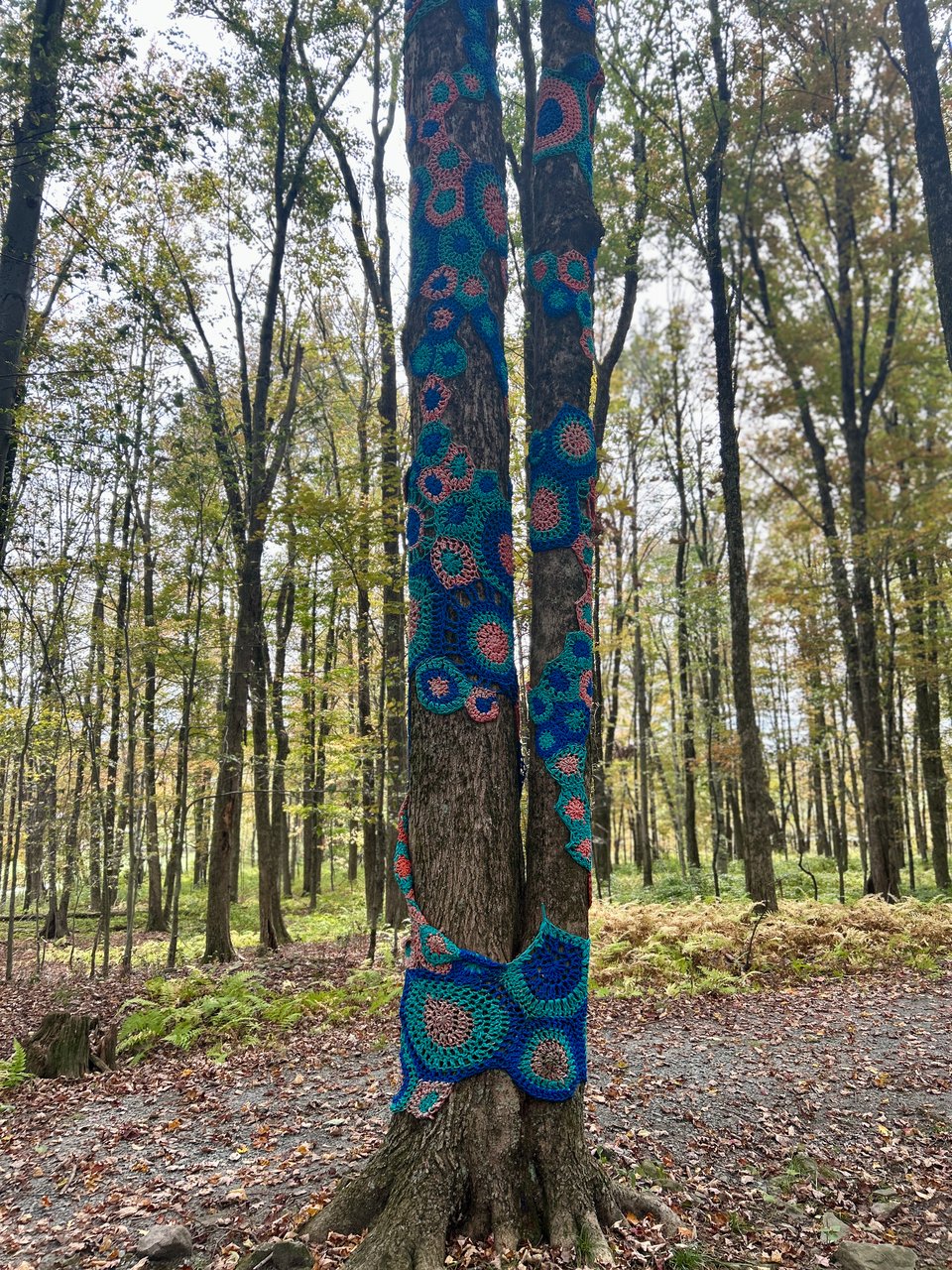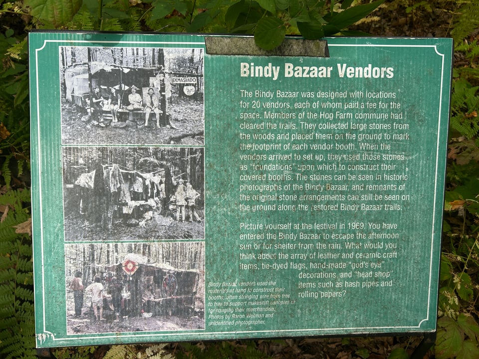 We did not go inside or visit the museum, but we walked around the grounds. You can’t walk around where the concert actually took place, which was a bit of a disappointment. But, I went inside and asked if we could walk around on the Bindy Trails, which are located in the woods where the concert goers set up tables and sold their arts and crafts. And the very nice woman at the front desk said yes. The trails were just newly maintained, and we enjoyed walking through the woods and looking at all of the crochet yarn bombing on the trees. I could definitely imagine the makeshift shops all along the trails and what the vendors sold. As someone who does shows on a regular basis, the freedom of this arrangement is very alluring.