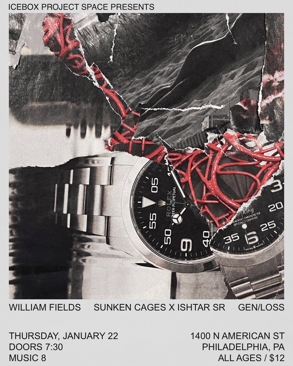 (2) I have a small gig coming up on January 22 in Philadelphia at Icebox Project Space. Details below: