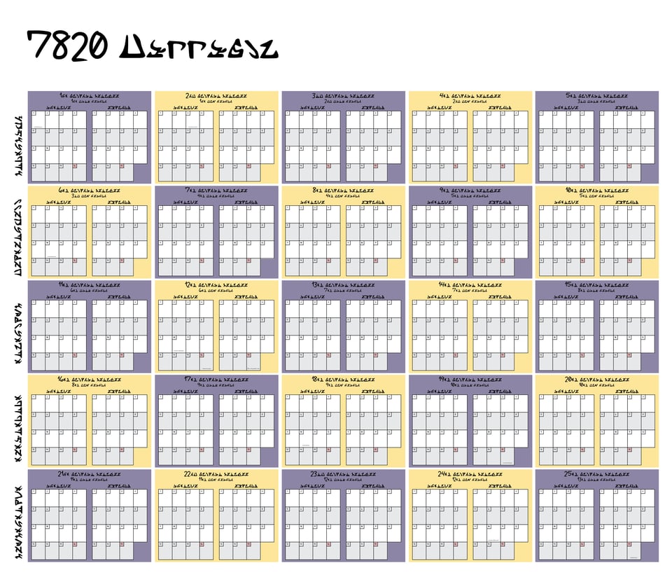 Prior to this I also created a “fully functional” calendar/date system for the comic based on the sparse nonsense terminology from the original comic complete with 48 astrological signs. I intend to include a full explanation of how this works on the Mythoslain site soon. But here’s some previews: