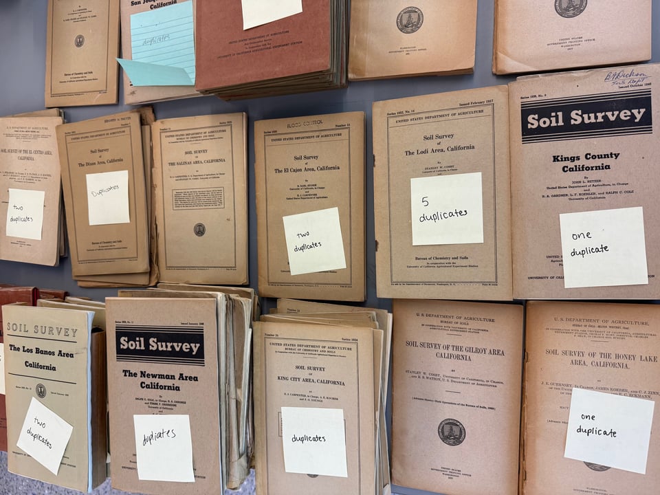 I could not be more delighted by what we found. We inventoried over 300 different types of materials, including soil maps from as early as 1905. We found colorful maps from all over California, type-written field guides, and a collection of Soil Conservation magazines from the 1940s. One student remarked that opening a box to find a book from 1886 was the highlight of her day. Every box contained a new surprise. We took care to count and catalog every single one.