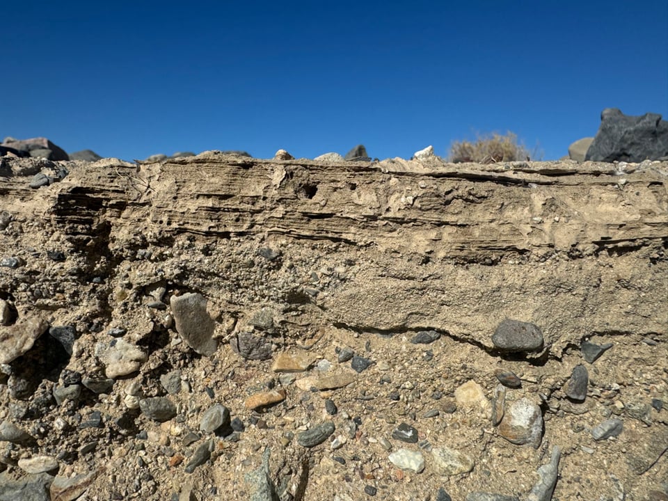 Water flowing through the desert exposes soils in ways unrivaled in any other ecosystem. It is one of the reasons I love the desert - you can see what’s happening below the surface! I was delighted to come across this cut bank on my wanderings last week. Notice the thin layers of platy structure at the surface. This feature forms from repeated wetting and drying events when air-filled pockets between soil particles (pores) lengthen and connect horizontally, rather than vertically.