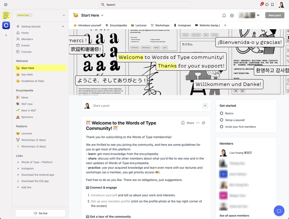 💝 COMMUNITY & MEMBERSHIP — A community has been created using Circle platform (sort of a mix between Slack, Facebook, and Eventbrite). It will be the place for members to get news before everybody else, discuss about what they think about WoT (improvements, suggestions for future updates, etc.), and meet other peers from everywhere who share the same interest for a multilingual / multicultural typography world.