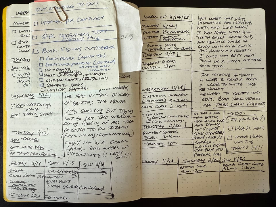 I've been trying to work on my routine, and it has helped me greatly to keep up weekly stints of productivity. I'm getting better at tracking my to-do's, learning to take those tasks a few at a time, and logging the ins and outs of my days. If you ever feel that time is fleeting, you can get a better perspective of how far you've come when you leave markers along the way.