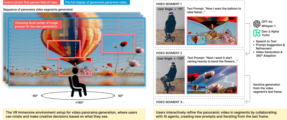 As AI creeps into everyday life, it is only fitting that it makes it's way into the VR pipeline. And it's a welcome addition. For many sectors that want to embrace VR one of the biggest barriers is the expense of creating environments and experiences. Whilst we're not quite at the point we can generate them using AI easily, it was reassuring to read the work of Yunge Wen who shared details of Imagine360, a proof of concept prototype designed to generate 360 videos from text alone.