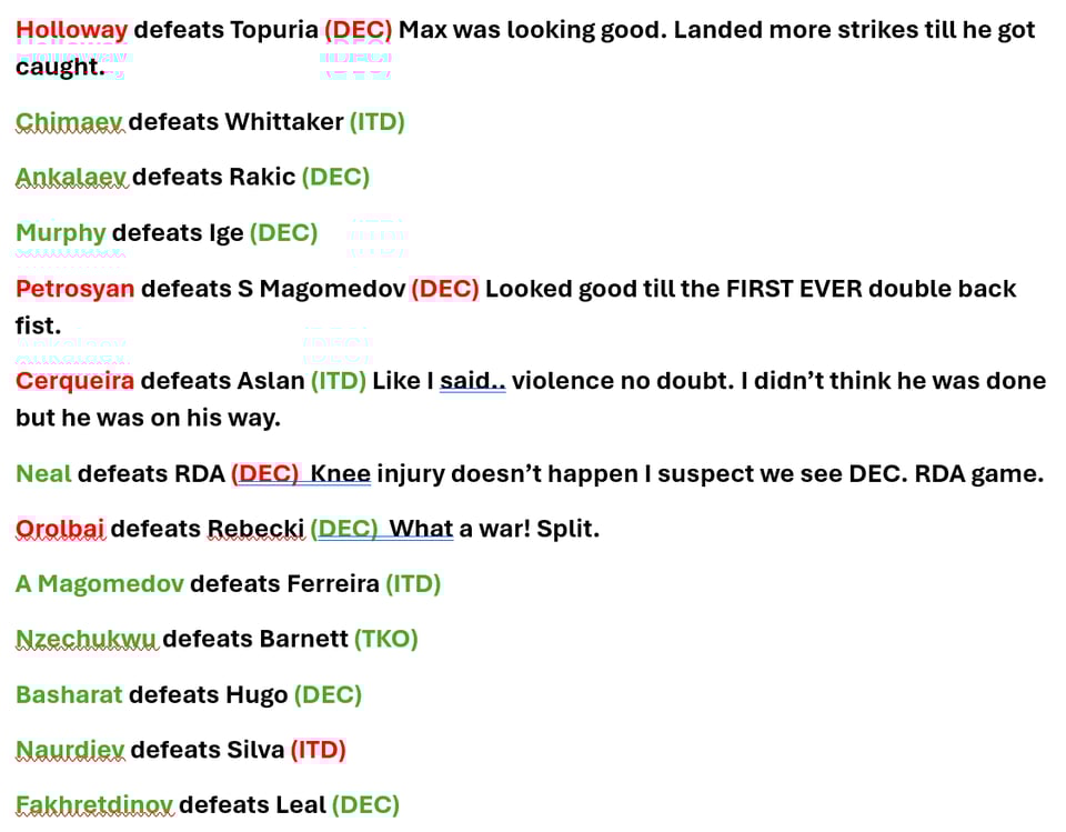 That was a pretty legit card yesterday. I always go back and recap the fight cards pretty late at night. If i’m wayyy off on a fight let me have it, but typically im fairly dialed. Some just don’t realize just how volatile this sport is, especially wagering. That said.. not too many clear L’s absolutely capped wrong card after card. Occasionally we see one, but as we say.. they make the list.