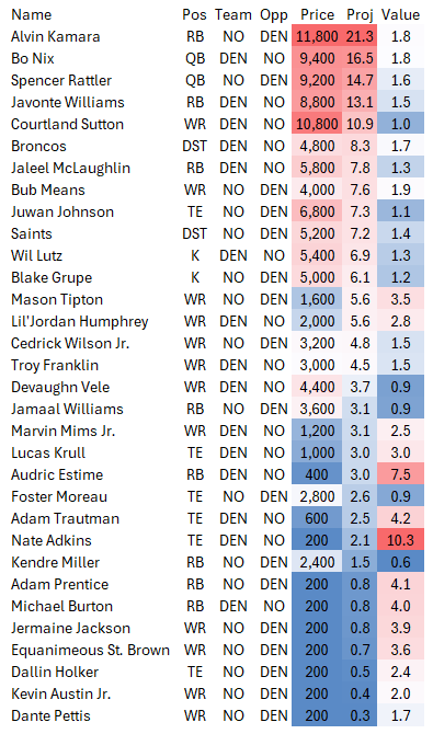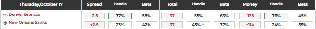 ML: Broncos -135, Saints +114