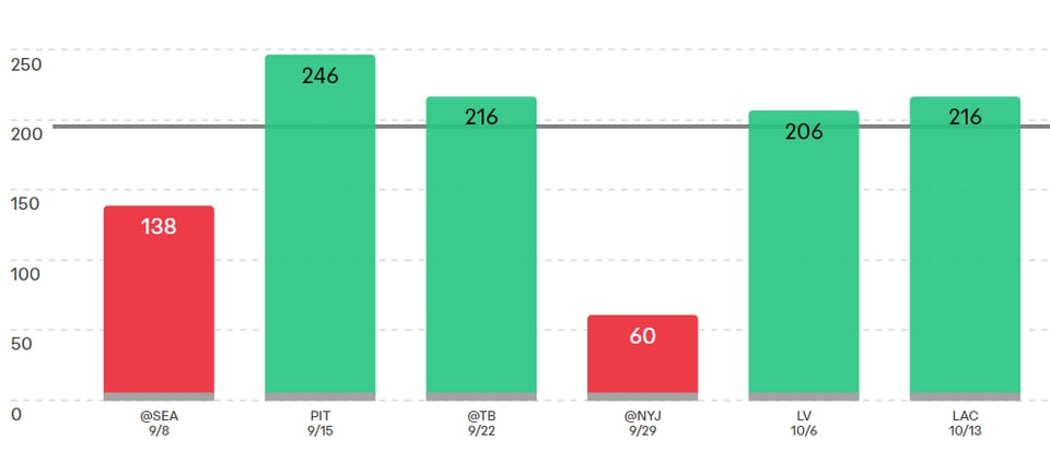 (Bo has gone over in 4 of last 5 games while the Saints have allowed 262.2 pass yards per game, rankings 29th overall. The kicker.. Saints have given up more than 194 pass yards to every QB they’ve faced on the year.)